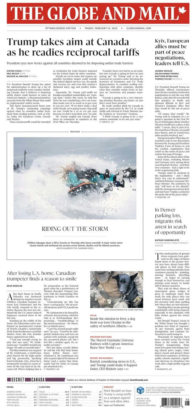 《The Globe and Mail》[CA] 2025-02-14(加拿大-环球邮报-英语原版-VIP会员免费-最新杂志外刊-PDF电子版下载-就在要识慧网-yaoshihui.vip)
