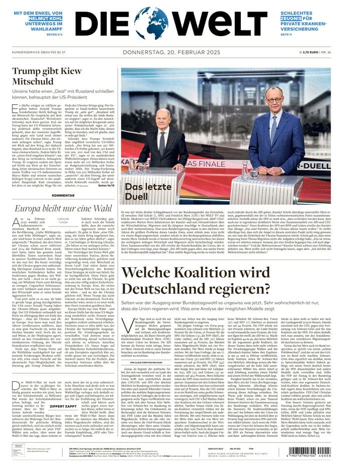 《Die Welt》[DE] 2025-02-20(德国-世界报-德语原版-SVIP会员免费-最新杂志外刊-PDF电子版下载-就在要识慧网-yaoshihui.vip)