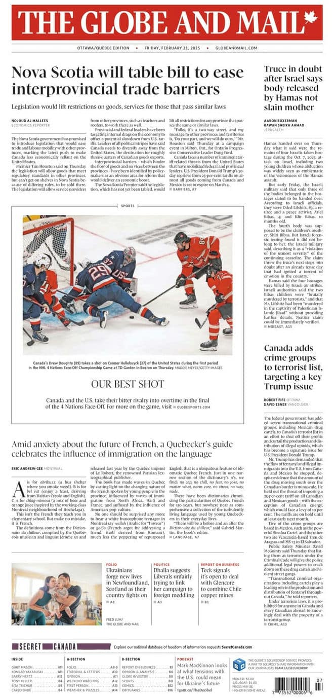 《The Globe and Mail》[CA] 2025-02-21(加拿大-环球邮报-英语原版-VIP会员免费-最新杂志外刊-PDF电子版下载-就在要识慧网-yaoshihui.vip)