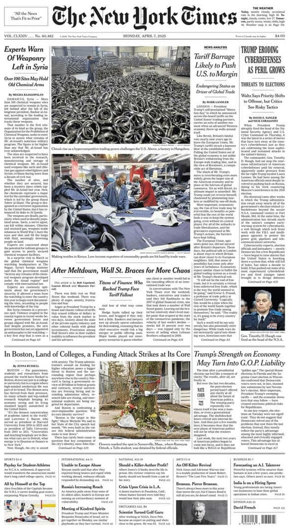 《The New York Times》[USA] 2025-04-07(美国-纽约时报-英语原版-VIP免费-电子杂志外刊-PDF下载-网盘订阅-要识慧VIP网-yaoshihui.vip)