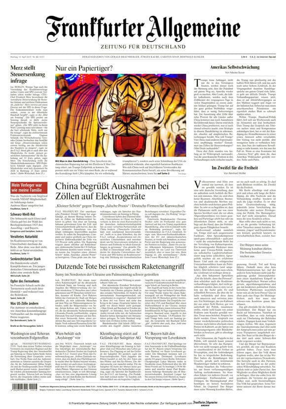 《F.A.Z.》[DE] 2025-04-14(德国-法兰克福汇报-Frankfurter Allgemeine Zeitung-德语原版-SVIP免费-电子杂志外刊-PDF下载-网盘订阅-要识慧VIP网-yaoshihui.vip)