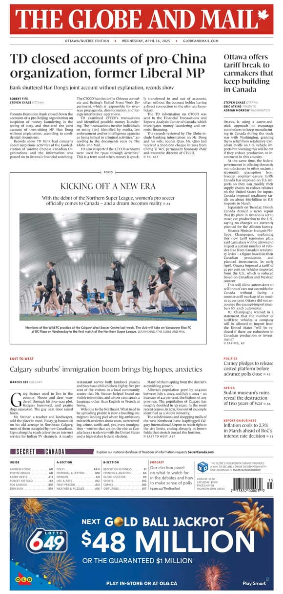 《The Globe and Mail》[CA] 2025-04-16(加拿大-环球邮报-英语原版-VIP免费-电子杂志外刊-PDF下载-网盘订阅-要识慧VIP网-yaoshihui.vip)