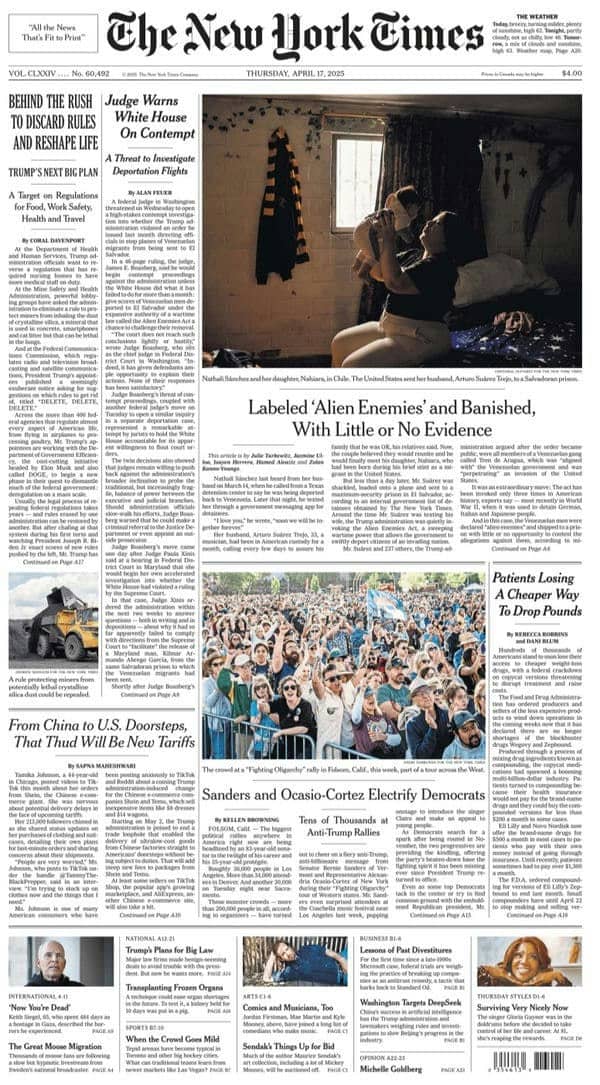 《The New York Times》[USA] 2025-04-17(美国-纽约时报-英语原版-VIP免费-电子杂志外刊-PDF下载-网盘订阅-要识慧VIP网-yaoshihui.vip)