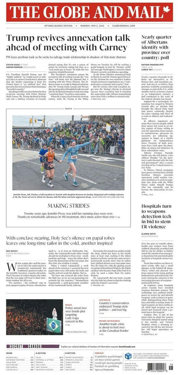 《The Globe and Mail》[CA] 2025-05-05(加拿大-环球邮报-英语原版-VIP免费-电子杂志外刊-PDF下载-网盘订阅-要识慧VIP网-yaoshihui.vip)